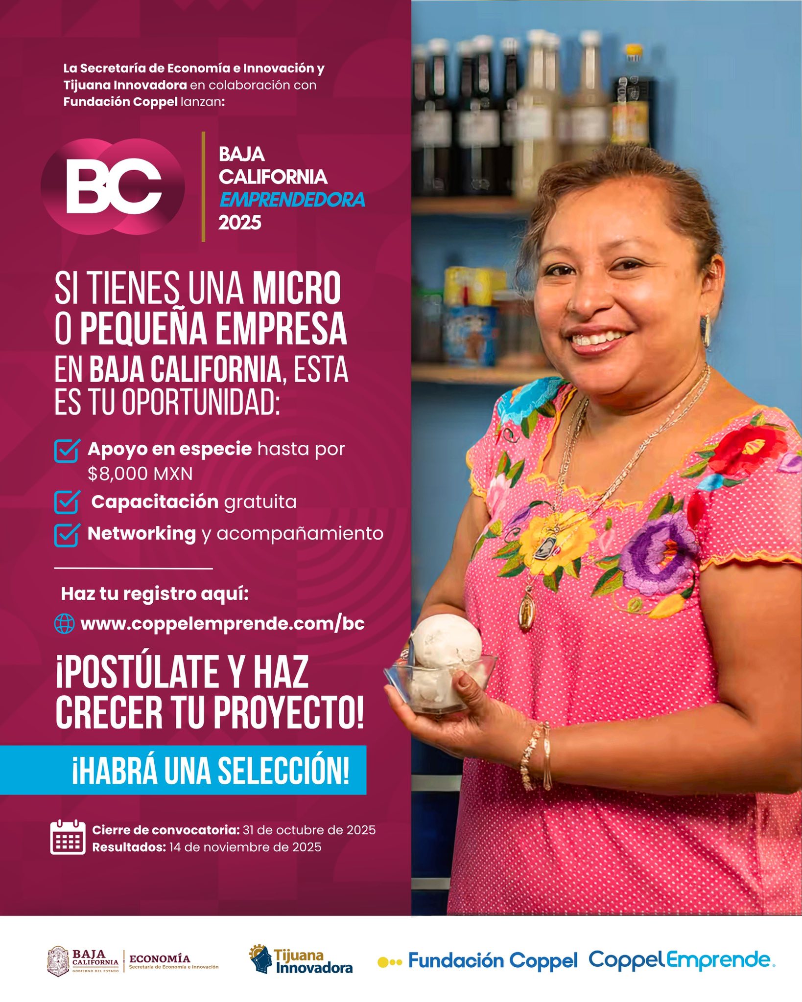 - Además, si eres emprendedor, tenemos activa la campaña “Baja California Emprende 2025” en colaboración con Fundación Coppel y el Gobierno del Estado de Baja California. Entra en este enlace y aprovecha todas las oportunidades que tenemos para ti