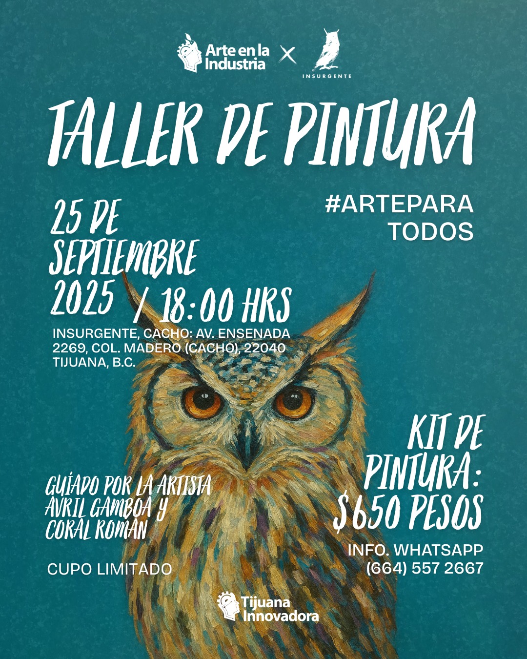 - Y si lo que quieren es sacar su lado más artístico, entonces les encantará saber que Arte en la Industria les tiene preparado un taller de pintura especial que ya es la próxima semana. Acá les dejamos todos los detalles: