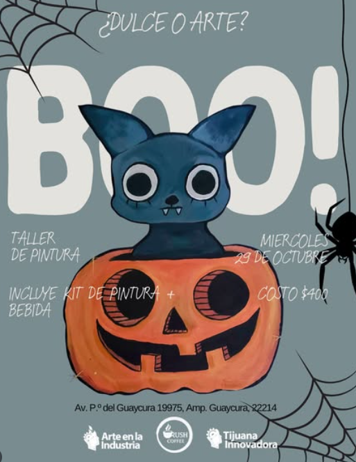 El taller de pintura “El Arte es para Todos” con temática de Halloween tendrá lugar el jueves 29 de noviembre a partir de las 17 horas en Rush Coffee, ubicado en Avenida P.º del Guaycura 19975, Ampliación. Guaycura, 22214. Tiene un costo de $400 pesos y los interesados pueden asegurar su lugar mandado un mensaje por WhatsApp al teléfono 664-557-26-67.