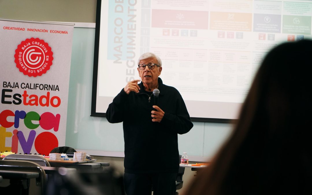 El presidente y fundador de Tijuana Innovadora, José Galicot Behar, se dirigió a los coordinadores del evento encabezado por la Organización de las Naciones Unidas para la Educación, la Ciencia y la Cultura (UNESCO), así como a las personas creativas independientes, colectivos culturales, organizaciones sin fines de lucro e instituciones gubernamentales enfocadas en el ámbito cultural que se dieron cita.